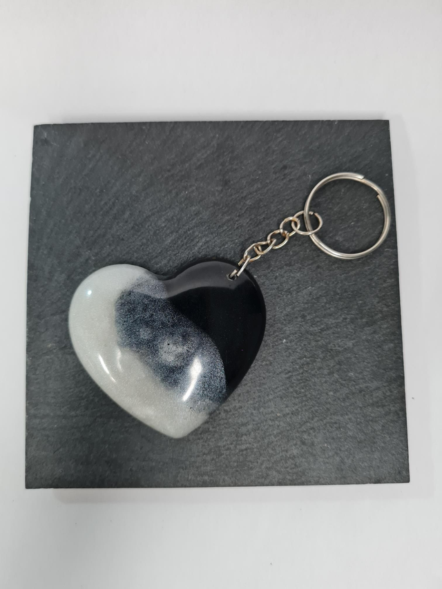 Porte - clé coeur noir et blanc Résine
